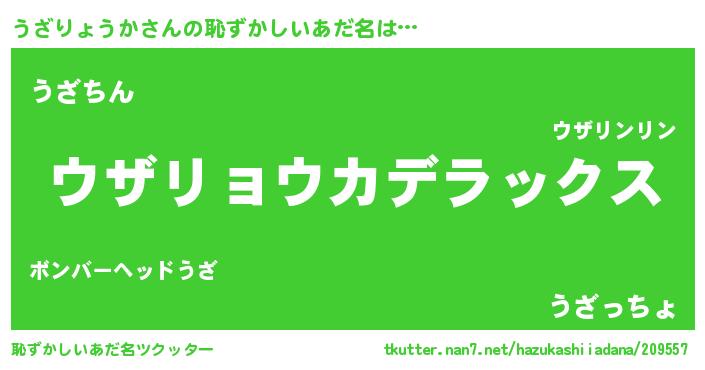 | 男性向けラノベタイトル風あだ名 | 『Re:うざりょうかから始める異世界生活』 |
