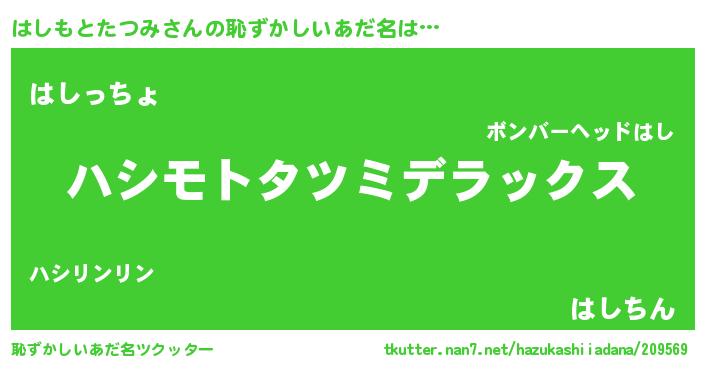 | 男性向けラノベタイトル風あだ名 | 『魔弾の王とはしもとたつみ』 |