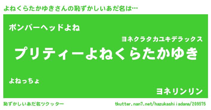 | 意味不明あだ名 | 『ペロリンよねくらたかゆき』 |