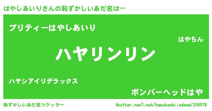 | 意味不明あだ名 | 『とにかく怪しいはやしあいり』 |
