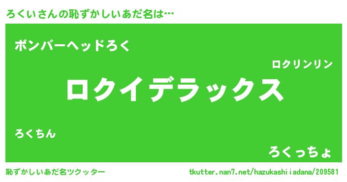 | ヒーロー風カッコイイあだ名 | 『超時空戦士ロクイ』『慈愛の使者ろくい』 |