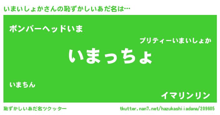 | 男性向けラノベタイトル風あだ名 | 『いまいしょかに滅ぼされるだけの簡単なお仕事です』 |