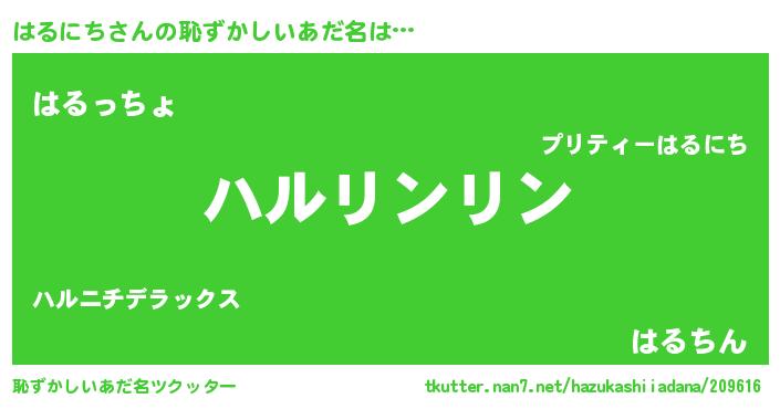 | ポケモン風あだ名 | 『ハルゴンZ』『ヒハルニチ』 |