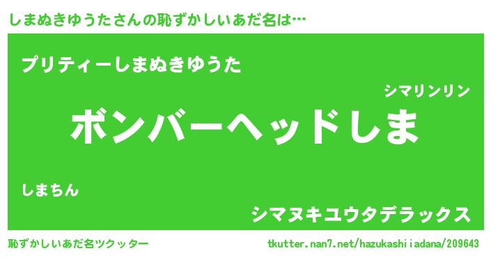 | ヘコむあだ名 | 『しまっふぃ~』『しまっ子』 |