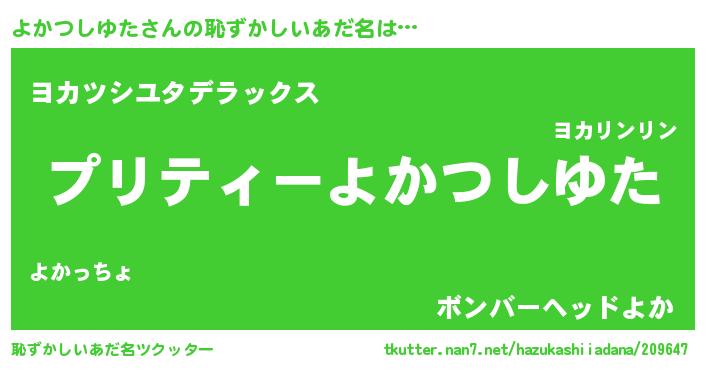| ヒーロー風カッコイイあだ名 | 『スーパーヨカツシユタ』『仮面ヨカダー』 |