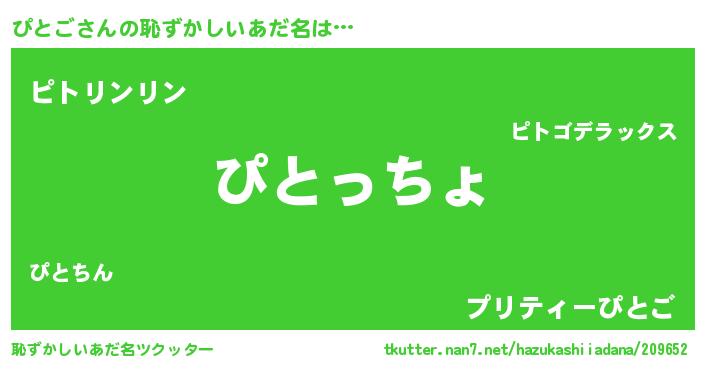 | 意味不明あだ名 | 『住所不定無職ぴとご(5歳)』『自称ぴとご』 |