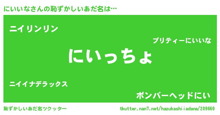 | 男性向けラノベタイトル風あだ名 | 『うちのにいいなが世界を掌握している!』 |