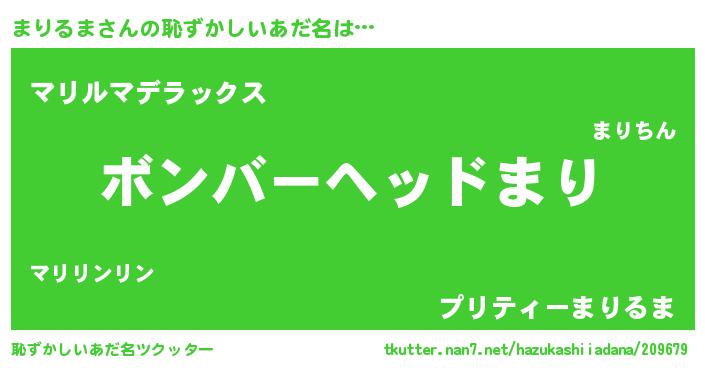 | ヘコむあだ名 | 『まりもー』『まりるま(笑)』 |