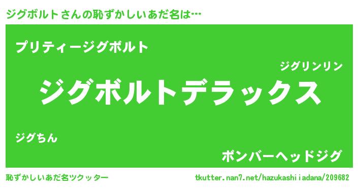 | ヘコむあだ名 | 『ジグにゅー』『ジグお』『酢こんぶ』 |