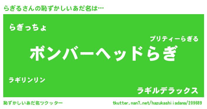 | 男性向けラノベタイトル風あだ名 | 『緋弾のラギル』『はたらくらぎるさま!』 |