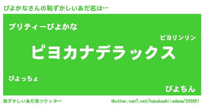 | 男性向けラノベタイトル風あだ名 | 『ぴよかな~年齢イコール彼女いない歴の魔法使い~』 |