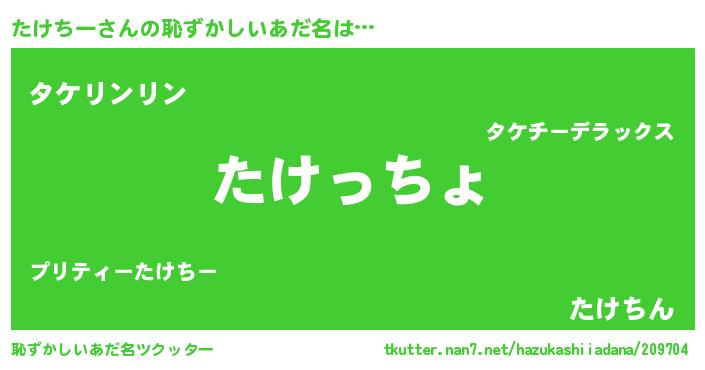 | 意味不明あだ名 | 『たけちーフォーエバー』『自称たけちー』 |