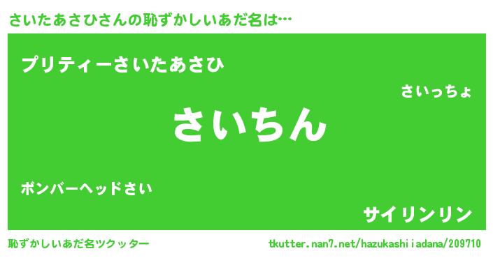 | 意味不明あだ名 | 『永久保存さいたあさひ』 |