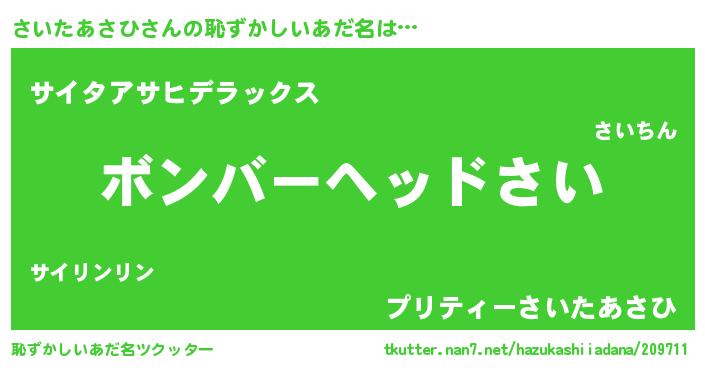 | ヘコむあだ名 | 『さいにゅー』『さいたあさひ(小並感)』 |