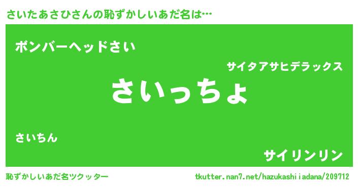 | 意味不明あだ名 | 『さいたあさひフォーエバー』 |