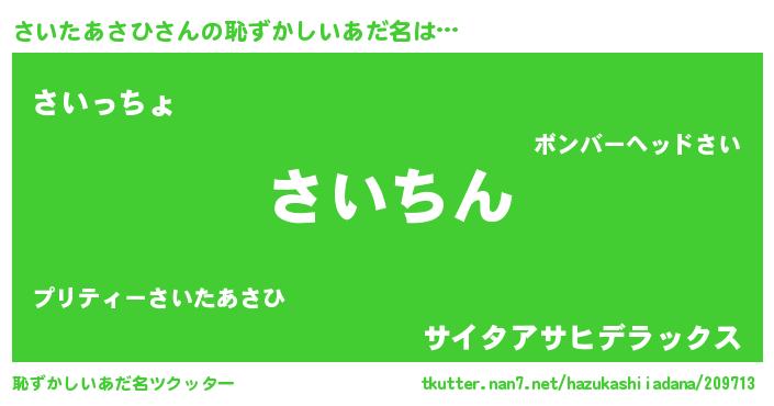 | 意味不明あだ名 | 『住所不定無職さいたあさひ(85歳)』 |
