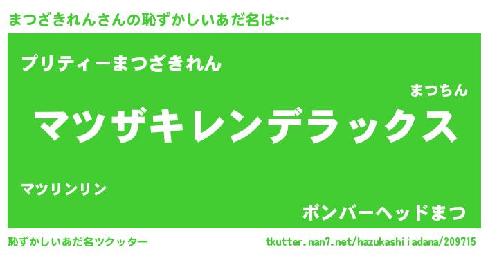 | 男性向けラノベタイトル風あだ名 | 『転生したらまつざきれんだった件』 |