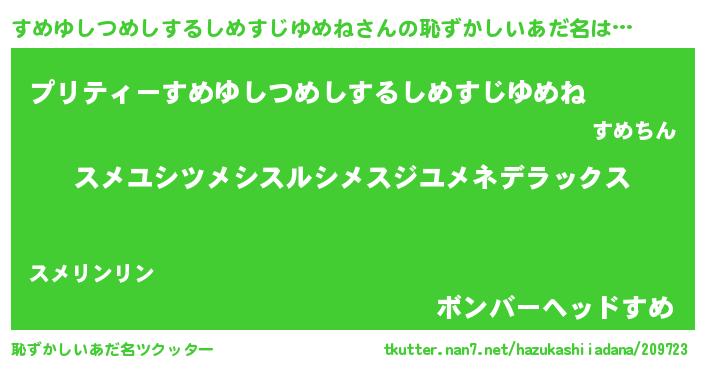 | ヒーロー風カッコイイあだ名 | 『サイバー戦士スメユシツメシスルシメスジユメネ』 |