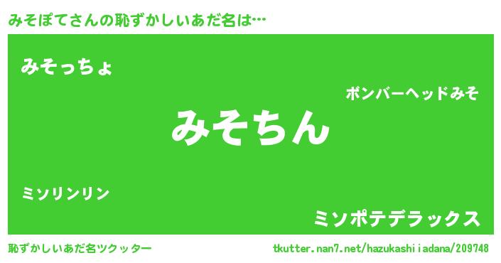 | 男性向けラノベタイトル風あだ名 | 『みそぽてという概念が存在しない退屈な世界 』 |