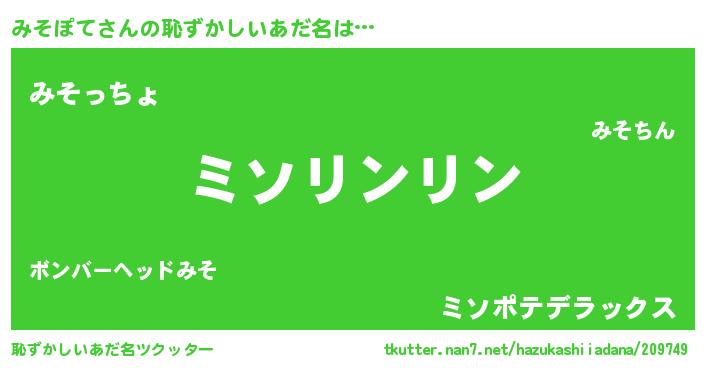| ヘコむあだ名 | 『みそっぺ』『豆乳』『みそふぇ~』 |