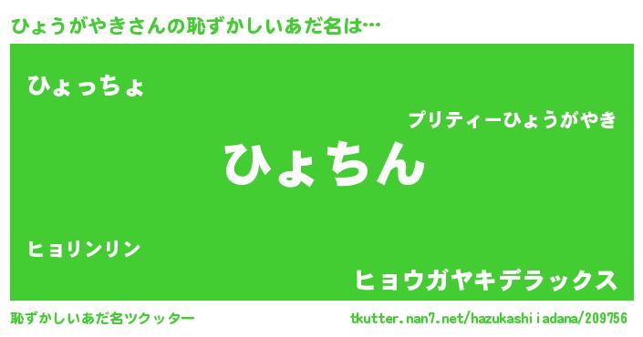 | 料理風あだ名 | 『ひょうがやきごはん』 |