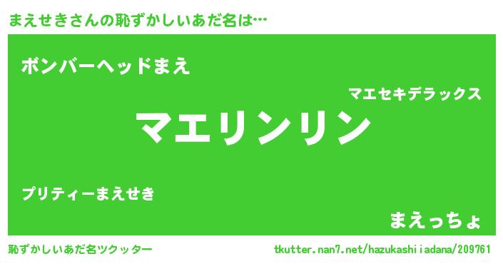| 欧米人風あだ名 | 『ウサインまえせき』『ダニエルまえせき』 |