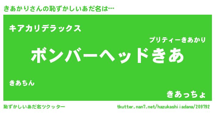 | ヒーロー風カッコイイあだ名 | 『正義の使者きあかり』『仮面キアダー』 |
