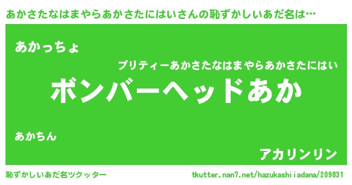 | ヘコむあだ名 | 『なまこ酢』『あかっぺ』『あかもー』 |