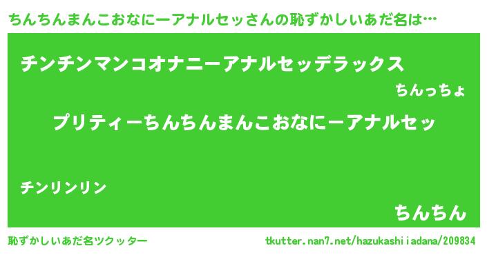 | ヒーロー風カッコイイあだ名 | 『スーパーチンチンマンコオナニーアナルセッ』 |