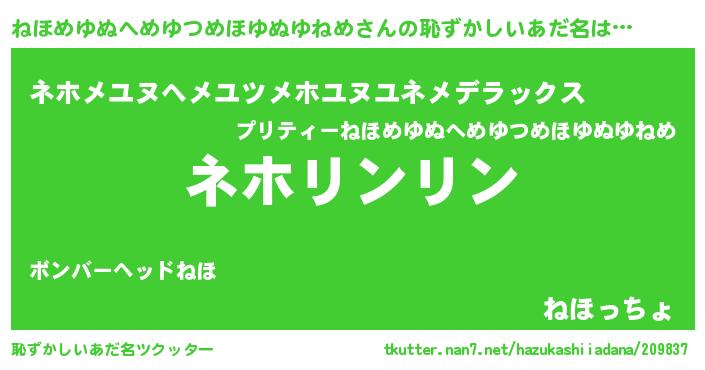 | 男性向けラノベタイトル風あだ名 | 『この素晴らしい世界にねほめゆぬへめゆつめほゆぬゆねめを!』 |