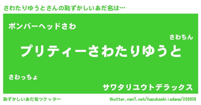 | ヘコむあだ名 | 『さわにゅー』『さわたりゆうと(笑)』 |