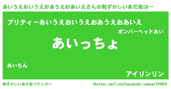 | 意味不明あだ名 | 『あいうえおいうえおあうえおあいえフォーエバー』 |