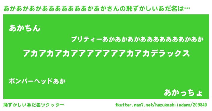 | ヘコむあだ名 | 『あかあかあかあああああああかあか(笑)』 |