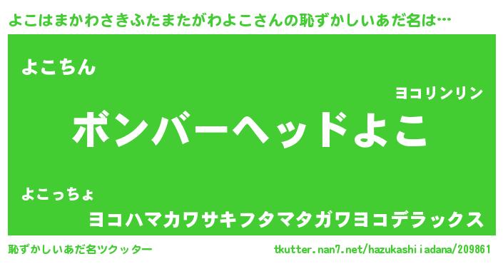 | 男性向けラノベタイトル風あだ名 | 『よこはまかわさきふたまたがわよこに滅ぼされるだけの簡単なお仕事です』 |