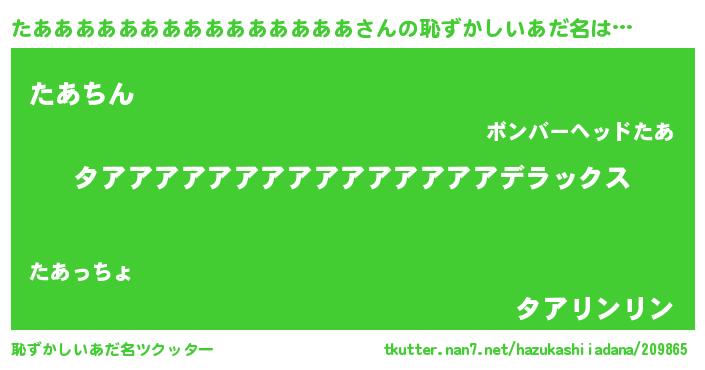 | 意味不明あだ名 | 『住所不定無職たあああああああああああああああ(5歳)』 |