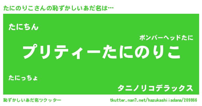 | 胡散臭い通販商品みたいなあだ名 | 『必ず成功するブレスレット…その名も「たにのりこ」』 |