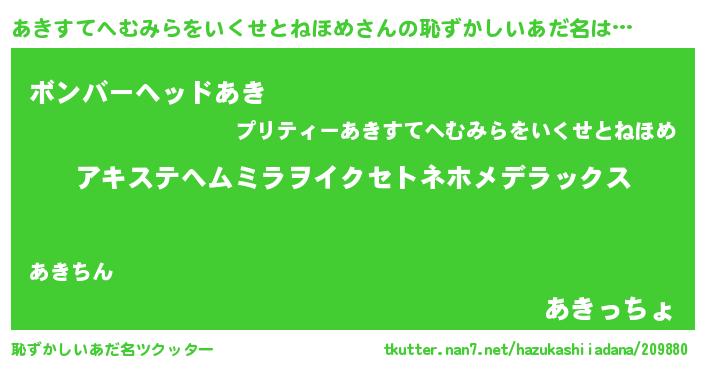 | 意味不明あだ名 | 『自称あきすてへむみらをいくせとねほめ』 |