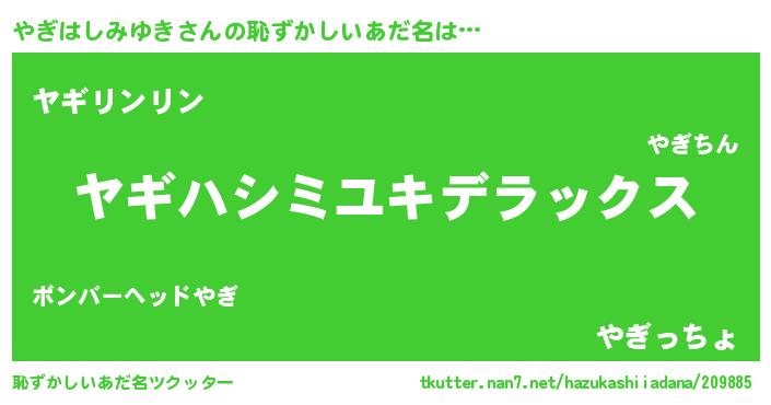 | 伝説のあだ名 | 『解き放たれた遊び人やぎはしみゆき』 |