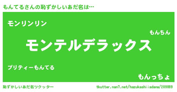 | 意味不明あだ名 | 『自称もんてる』『なめこ科もんてる属』 |