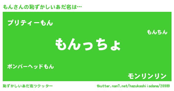 | 女子向けラノベタイトル風あだ名 | 『もん伯爵の花嫁』『もんは平凡を望む』 |