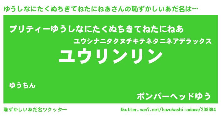 | ポケモン風あだ名 | 『ヒユウシナニタクヌチキテネタニネア』 |