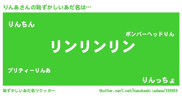 | ヘコむあだ名 | 『りんっちょ』『りんあ(遠い目)』 |