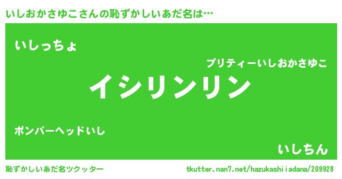 | ポケモン風あだ名 | 『ヒイシオカサユコ』『イシゴンZ』 |