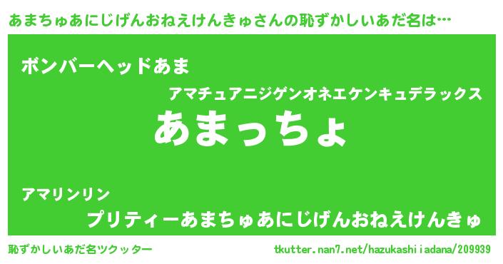 | 意味不明あだ名 | 『あまちゅあにじげんおねえけんきゅフォーエバー』 |