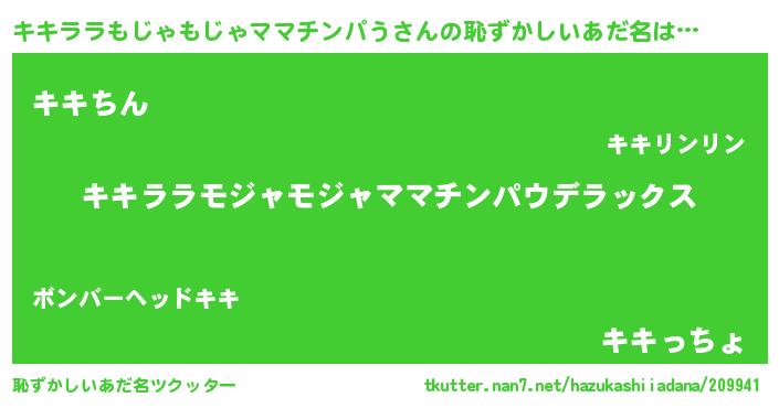 | ヒーロー風カッコイイあだ名 | 『サイバー戦士キキララモジャモジャママチンパウ』 |
