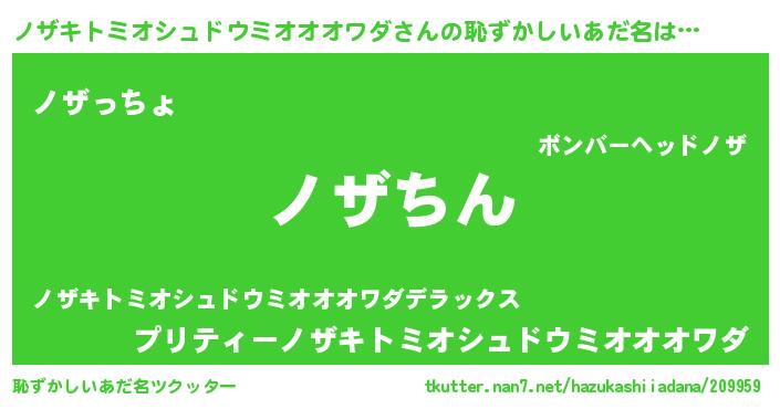 | 可愛いあだ名 | 『ノザキトミオシュドウミオオオワダママ』 |