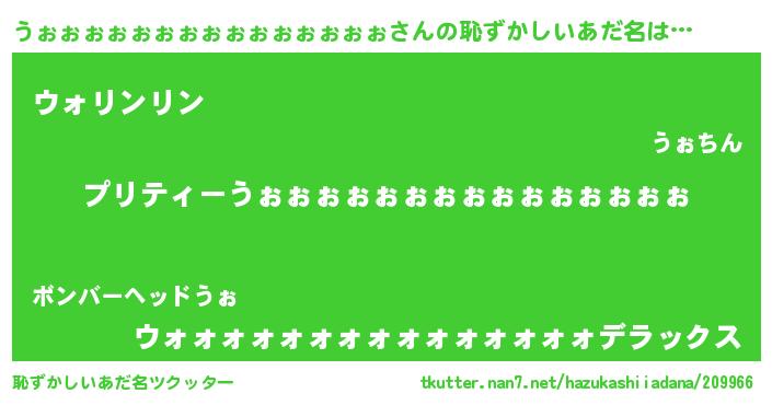 | 男性向けラノベタイトル風あだ名 | 『うぉぉぉぉぉぉぉぉぉぉぉぉぉぉぉの憂鬱』 |