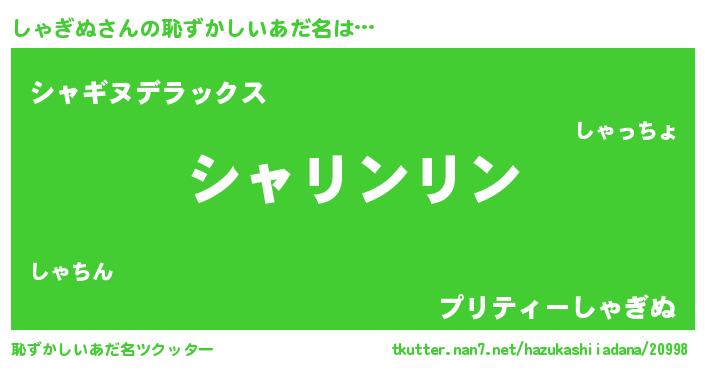 | 意味不明あだ名 | 『とにかく怪しいしゃぎぬ』 |