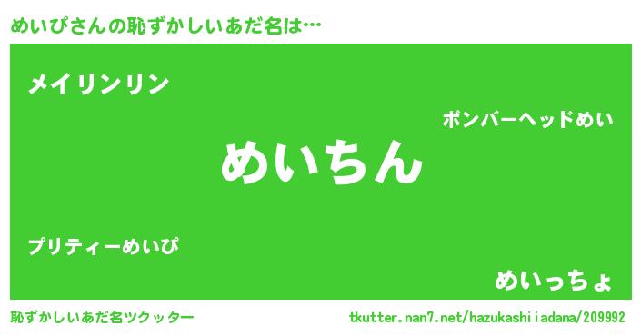 | ヘコむあだ名 | 『めいぴ(小並感)』『めいっ子』 |