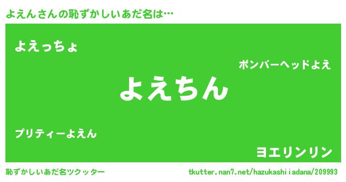 | 意味不明あだ名 | 『永久保存よえん』『よえんフォーエバー』 |